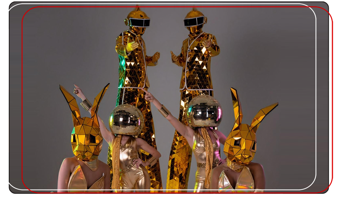Cyber Gold Mirror Show is a futuristic high-energy performance featuring gold mirror stilt walkers, disco head performers and holographic bunny dancers. This show delivers a unique blend of luxury, sci-fi style and dance-floor excitement—perfect for modern parties, night events, corporate celebrations and high-impact entertainment experiences. With reflective costumes, synchronized movement and a powerful visual presence, this show transforms any event into a vibrant futuristic celebration.