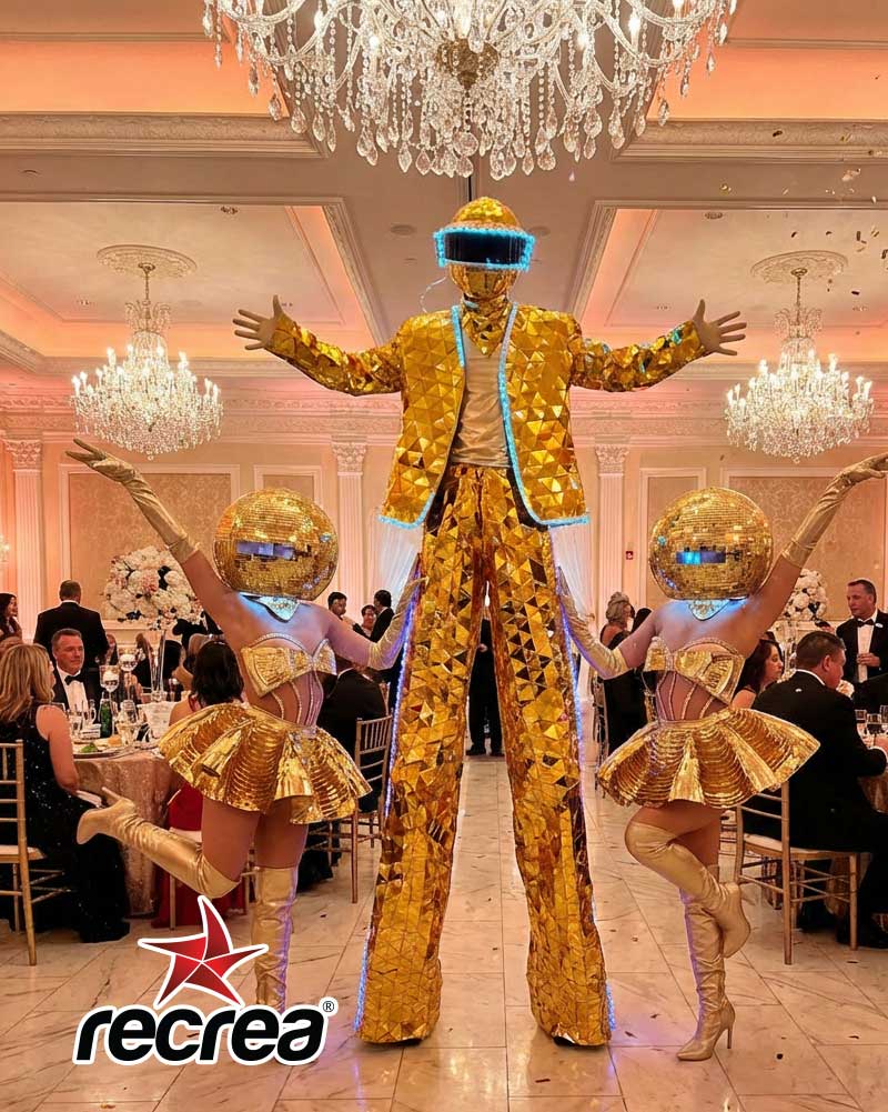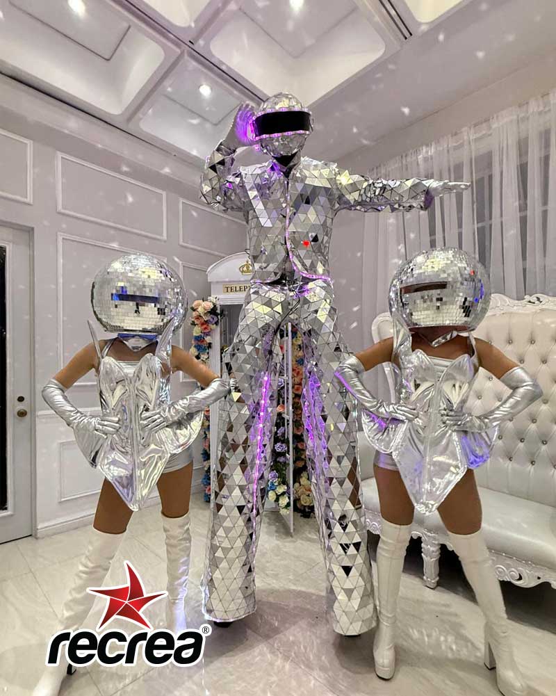 Step into a futuristic world of shimmering lights and high-energy entertainment with our Galactic Disco Mirror Show! This show blends dazzling mirror stilt walkers with glamorous disco-inspired performers, creating an unforgettable experience that transforms any event into a vibrant light-filled celebration. Perfect for galas, nightlife events, corporate parties, and luxury celebrations, this performance brings nonstop visual impact, movement, and interactive fun for all guests.