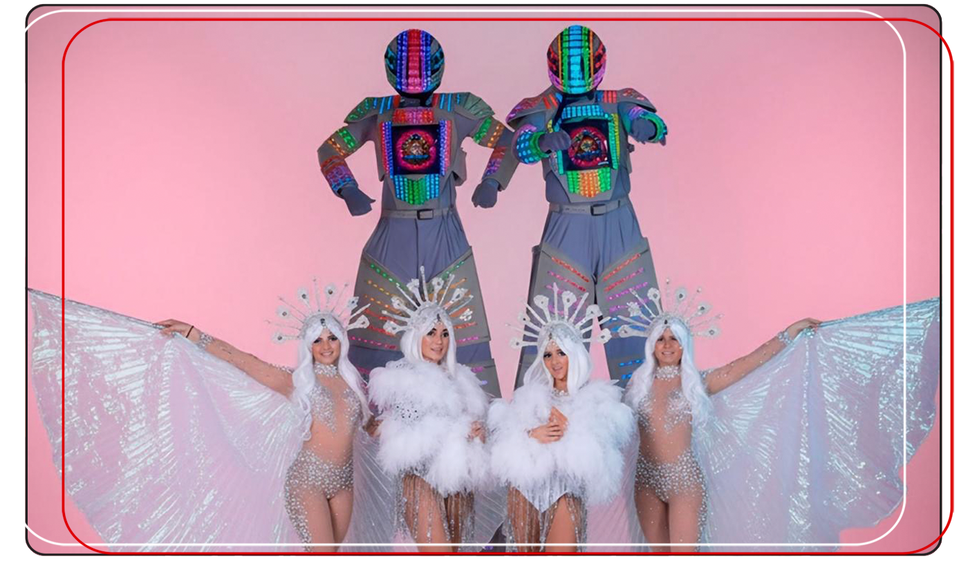 LED Cyber Angels Show combines futuristic LED robot performers with elegant white angel-wing dancers to create a visually stunning, high-energy experience. Perfect for modern parties, night events, corporate celebrations and high-impact moments, this show blends illuminated technology with graceful choreography. The combination of glowing LED suits and shimmering wing costumes transforms any event into a vibrant and unforgettable futuristic celebration.